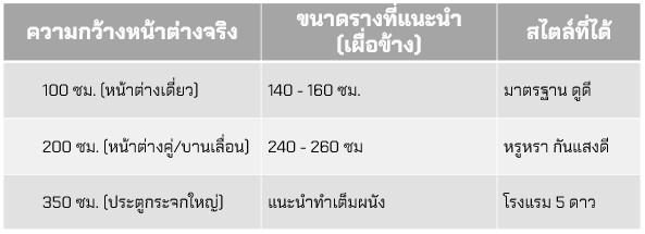 ระยะห่างจากผนัง: เนื่องจากลอนม่านมีความโค้ง ควรเว้นระยะติดตั้งจากผนังหรือหน้าต่างประมาณ 10-15 ซม. เพื่อไม่ให้ลอนผ้าไปเบียดกับผนังจนเสียทรง