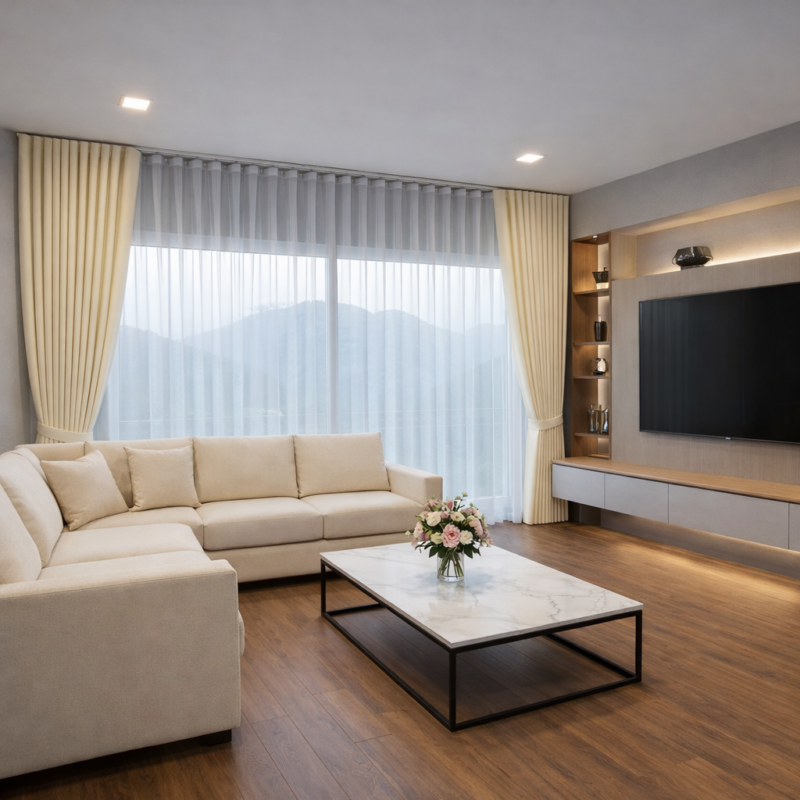 - ความสวยงามไร้ที่ติ: ไม่มีหัวจีบหรือห่วงม่านโผล่มาให้เห็น (หากเลือกติดตั้งแบบซ่อนราง) ทำให้ภาพรวมของห้องดูสะอาดตา